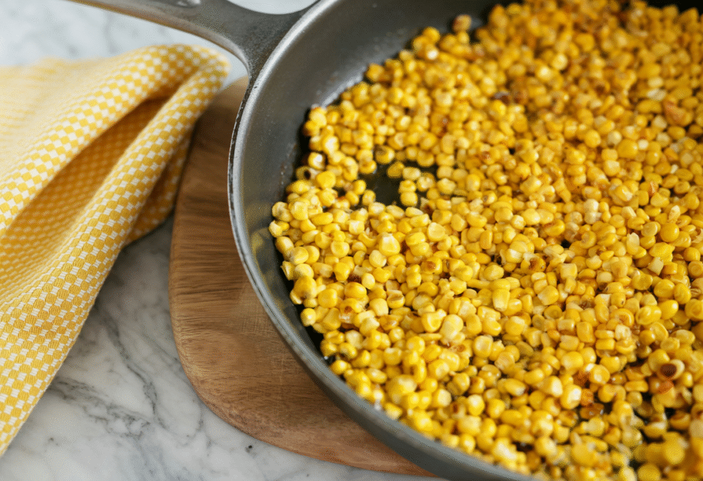 • Heat oil in a skillet over medium-high. Cut kernels from cobs and cook with salt and pepper, stirring occasionally, until browned (10–15 min).