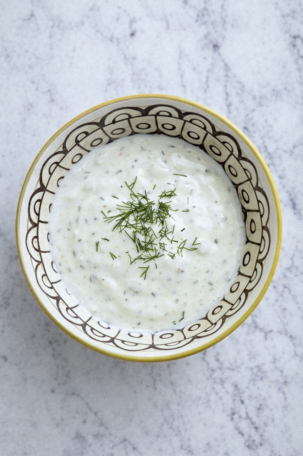 - Add mayonnaise, buttermilk, parsley, black pepper, salt, garlic powder, onion powder, thyme, and dill to a medium bowl.