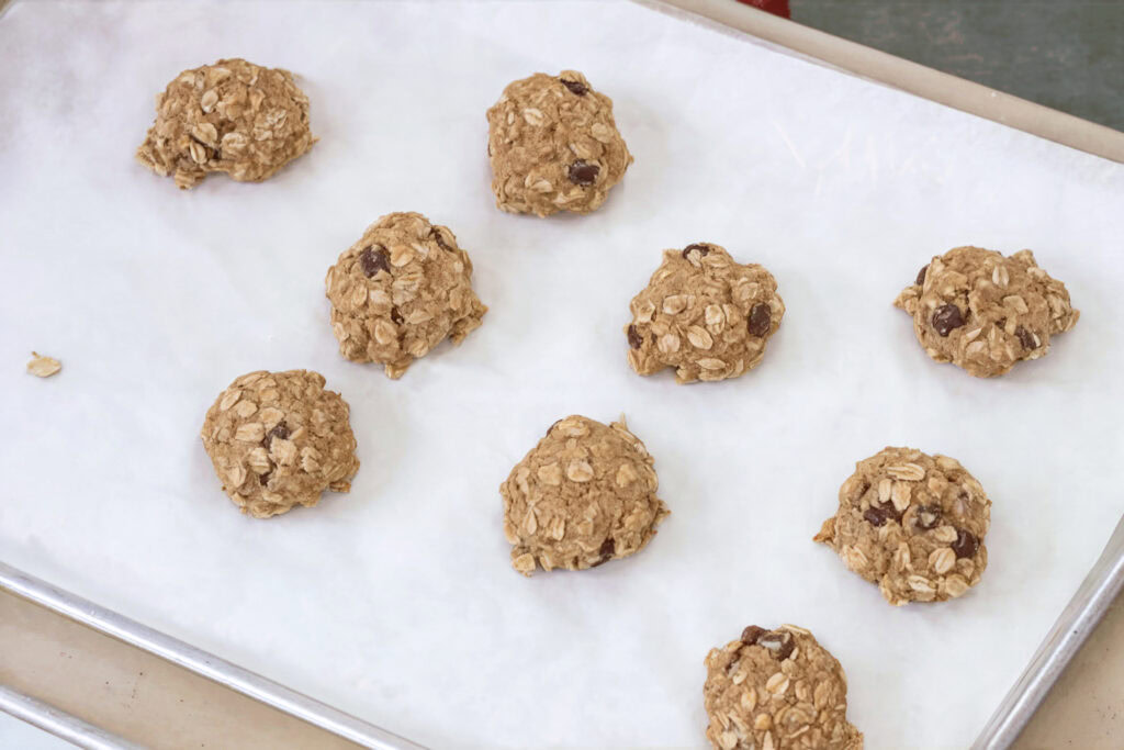 Divide the dough into 20 portions (about 3 Tbsp each) and place 10 on each prepared sheet, spacing them 2 inches apart.