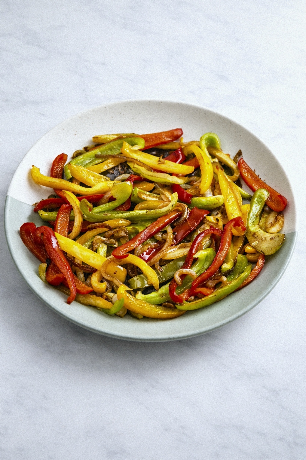 Sauté for ~10-12 minutes, stirring occasionally but not constantly – you want to give the peppers time to develop char marks.