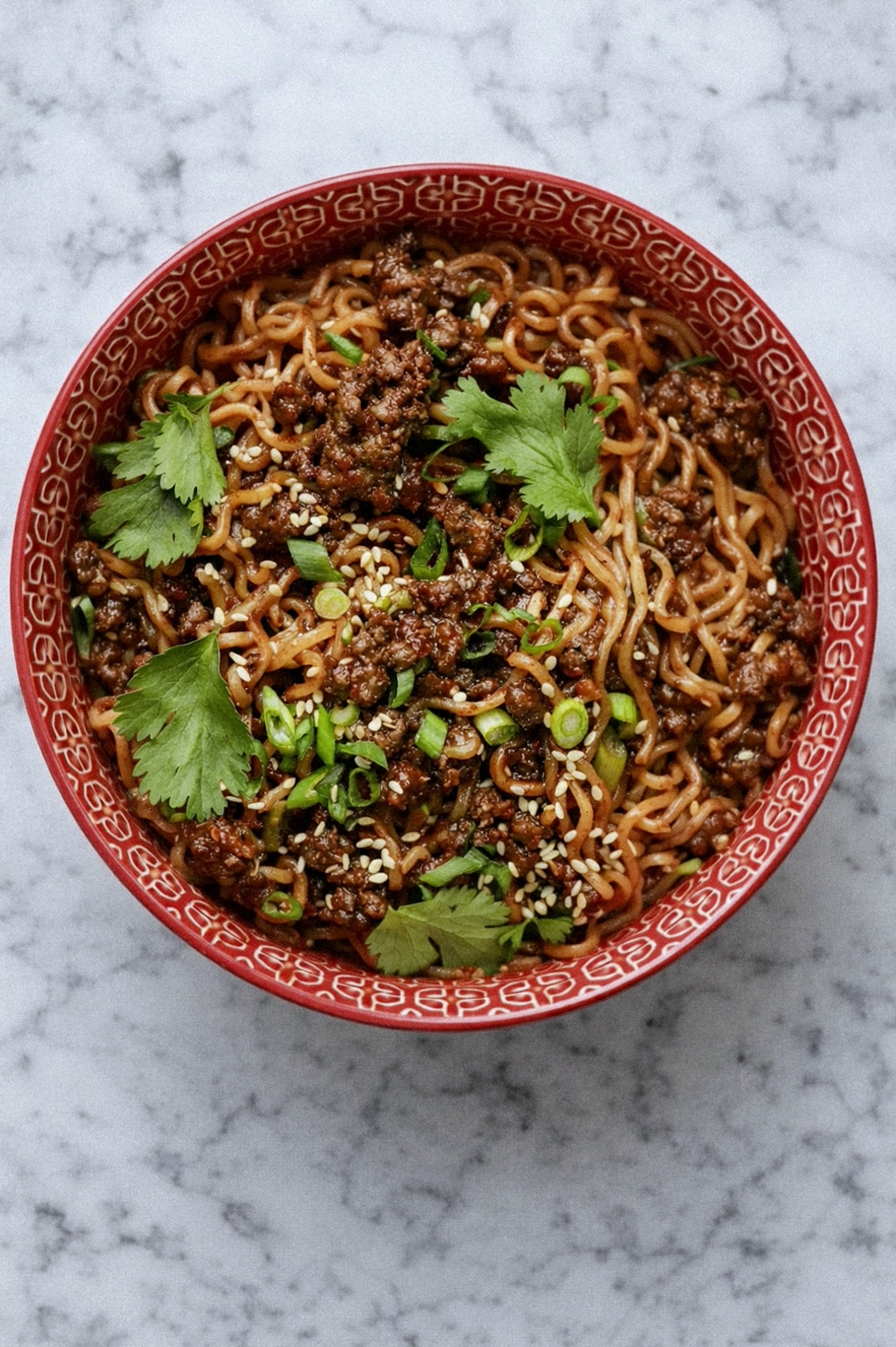 Finish with fresh cilantro, sliced green onions, and a sprinkle of toasted sesame seeds.