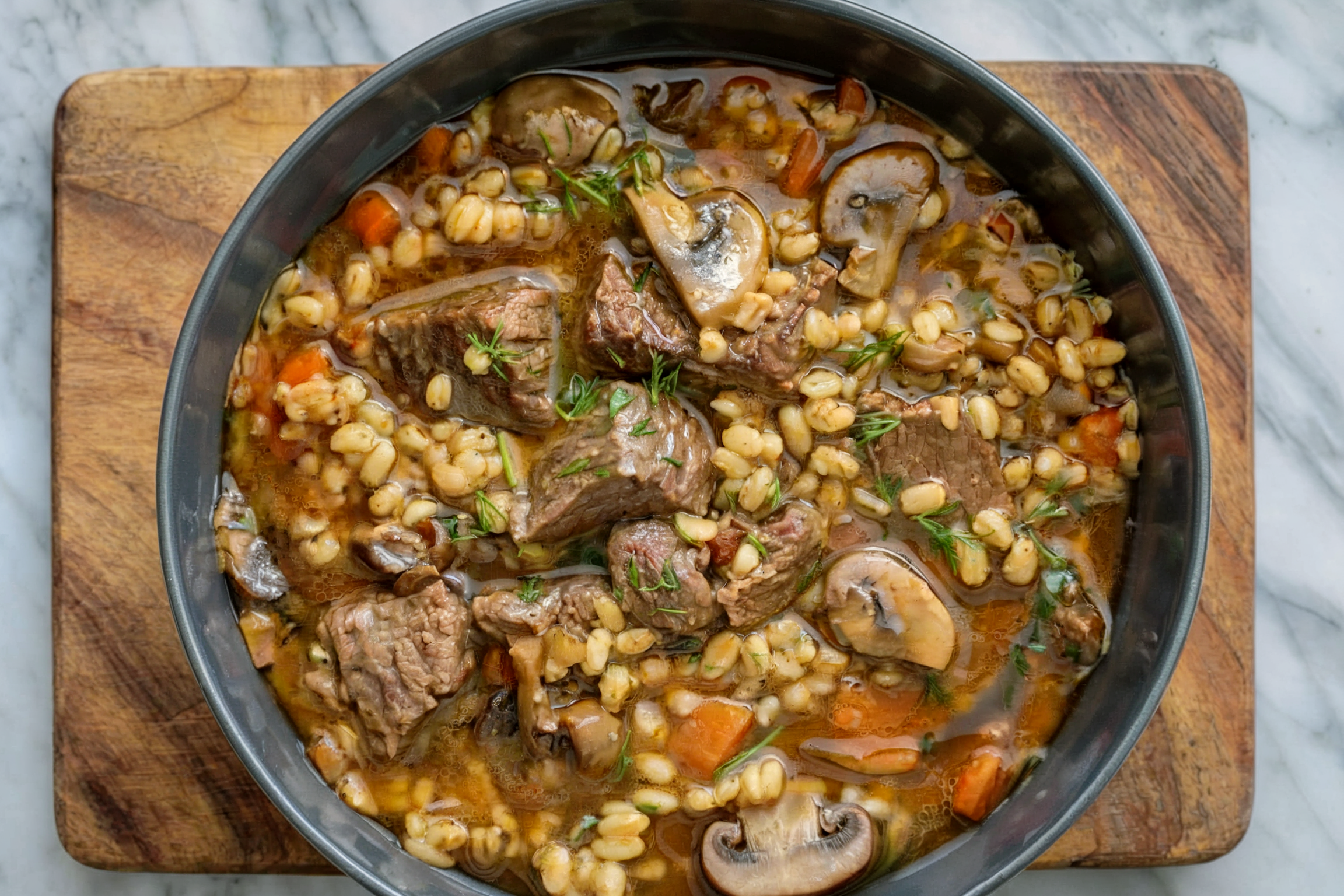 Bring everything to a boil, then turn the heat down to low, cover the pot, and let it simmer for at least 1.5 to 2 hours. The soup is ready when the beef is fall-apart tender and the barley is cooked through. Remember to pull out the bay leaves before you serve it.