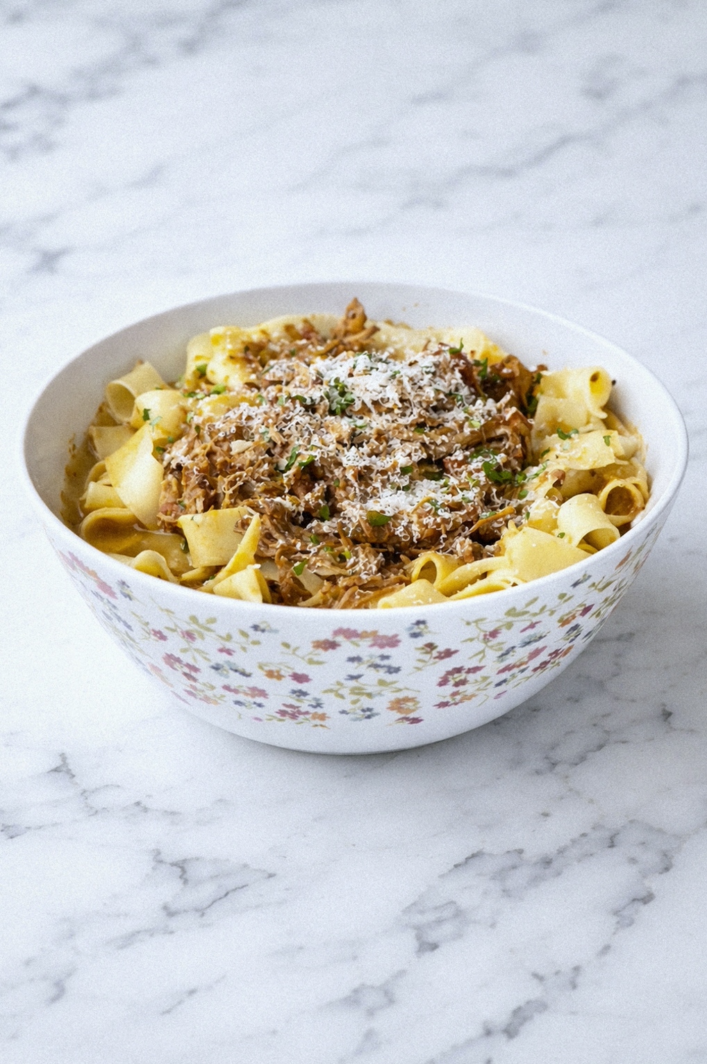- Toss hot pasta with ragu, adding pasta water if needed to coat noodles.