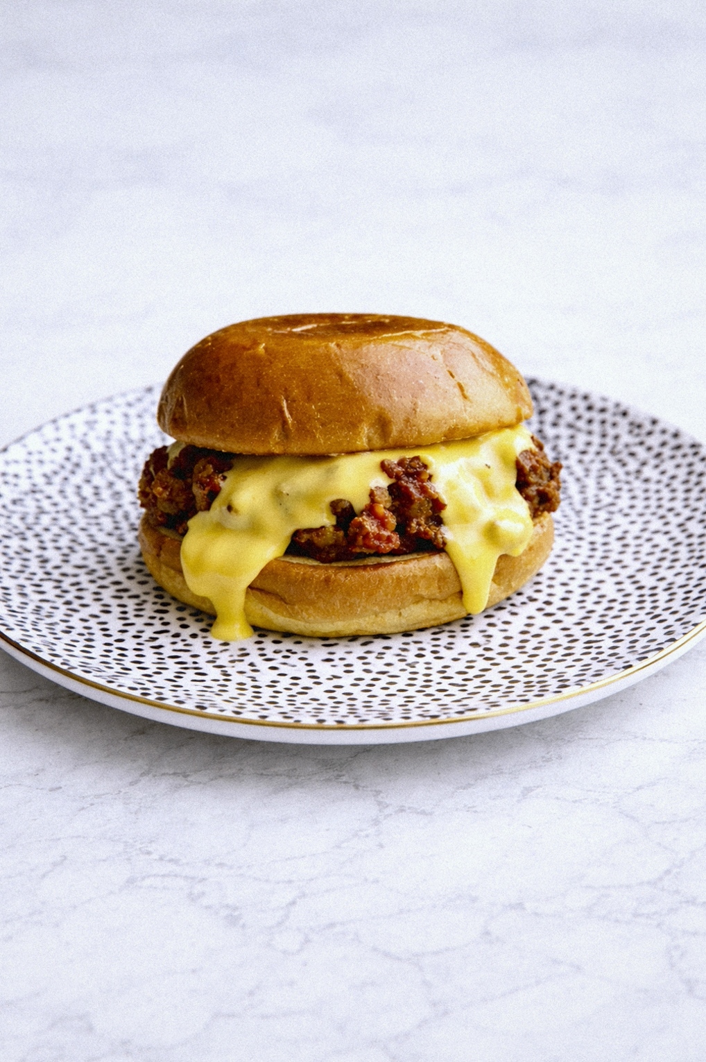 Cap with the top bun and serve immediately while the cheese is still hot and creamy.